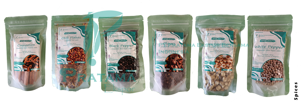 There are many Indonesian dishes have a distinctive aroma and often feature rich spice flavors. Seven types of superior spices for Indonesian exports include: Pepper, Nutmeg, Vanilla, Cloves, Ginger, Cinnamon, Turmeric.